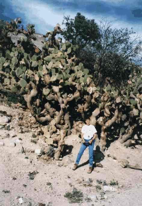 Real de Catorce has a ethereal feeling. The ruins are wonderful, and many photography workshops come to photograph the town and ruins under the beautiful, constantly changing sky. (To see a picture of the town, click HERE. Many of the buildings are unoccupied ruins. (This trip was before digital cameras, and my scanned photos aren't nearly as clear and wonderful as digital photos.) For a picture of me standing in front of some giant cactus, very typical in the area, click HERE.)