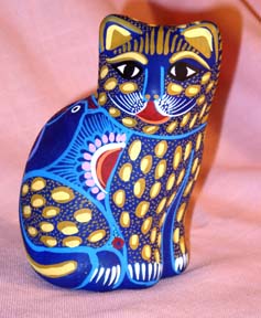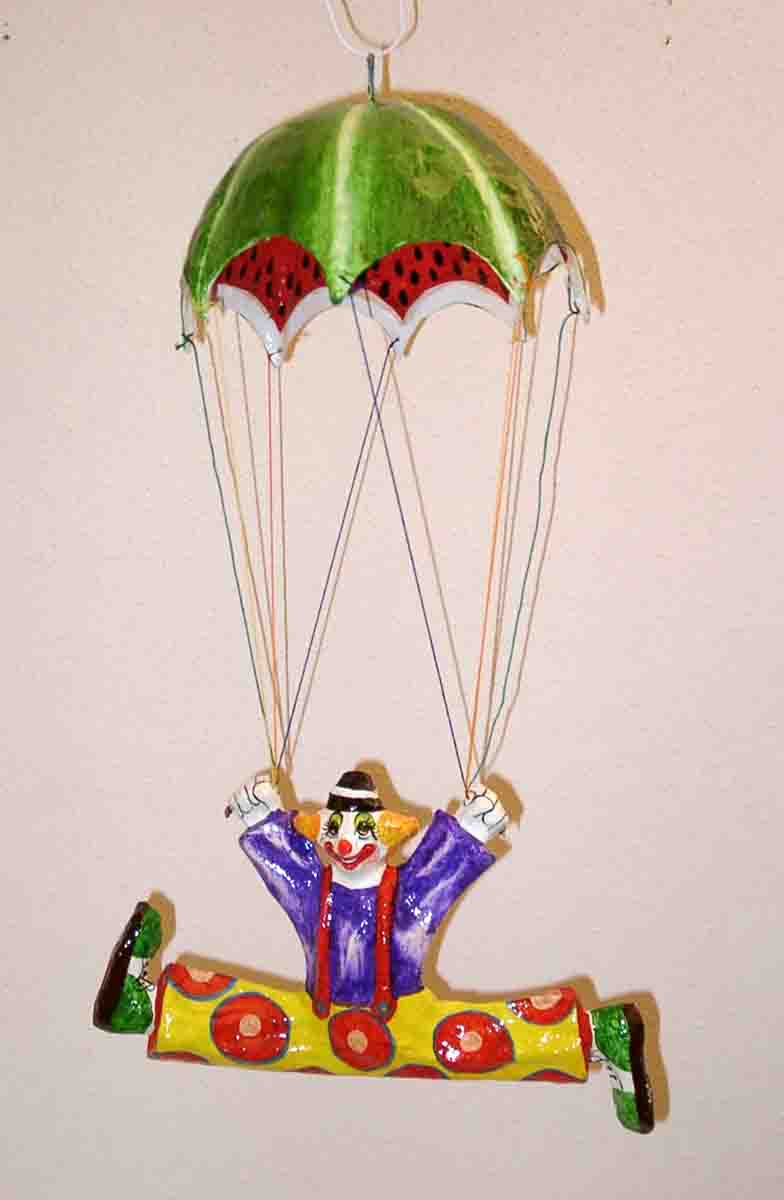 Charming paper mache figures - various parachuting clowns, and at right two of many different varieties of viejitos (old Mexican peasants) approximately 12-inches tall. Far right, a closeup of one. | ![]() |