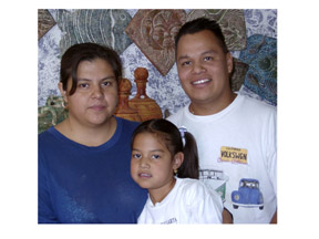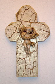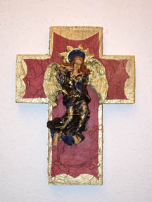 | Right, just a few of the various types of rustic crosses. Below is a retablo (altar piece), another type of cross; and a picture of Isidro, the young man who crafted the crosses, and his family. | ![]() |