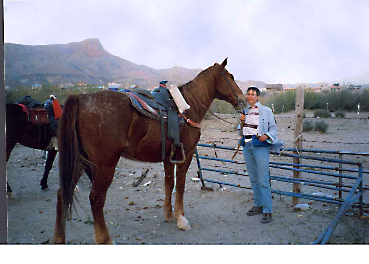 Our guides would be Linda Walker, the owner of Lajitas Stables; Onorio Orosco, head wrangler, and 18-year-old Kelly Sufficool. The three of them caught and saddled the horses, matching our mounts to our individual ability. Mine was a huge bay called Red Rock.
